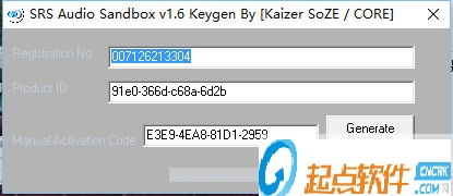 4、打开压缩包内的“keygen.exe”注册机,将上图中的“产品ID”复制到注册机的Produce ID中,点击“Generate”,生成Registration No(注册码)和Manual Activation Code(手动激活代码)