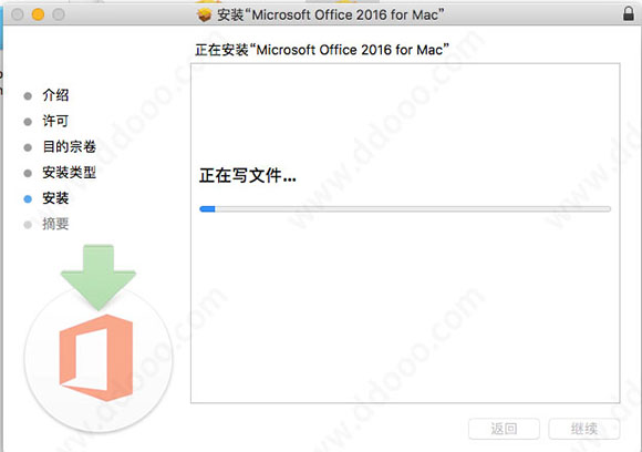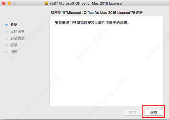2、打开【Microsoft_Office_2016_15.27.0_161010_Installer】后会启动安装器,我们按照安装器的要求选择继续