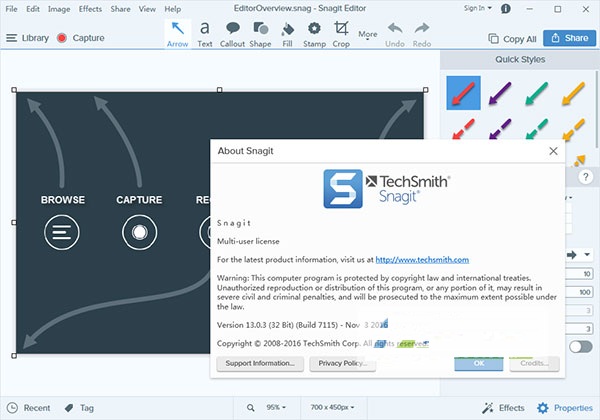 snagit 破解版是Windows系统上一款非常著名的优秀屏幕、文本和视频捕获、编辑与转换软件,snagit 破解版不仅仅可以截取图像,它还可以捕获视频,以及对截取后的图像进行强大的编辑等等。