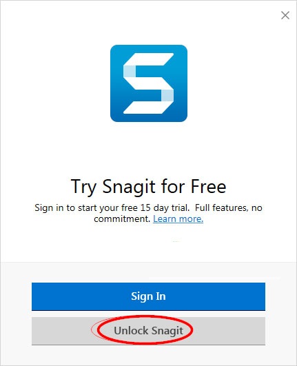 2、安装完成后,弹出注册界面点击Unlock Snagit