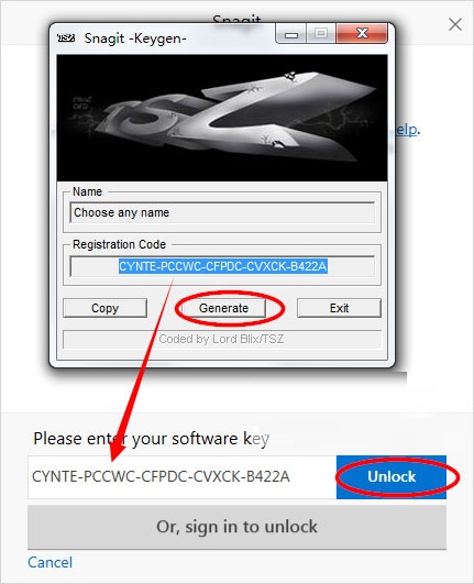 3、然后将Snagit 13注册机生成的注册码复制到界面中,点击Unlock完成破解即可