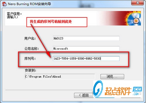 3、将序列号粘贴到安装向导填写系列号的方框中,然后点击下一步,指导安装完成。
