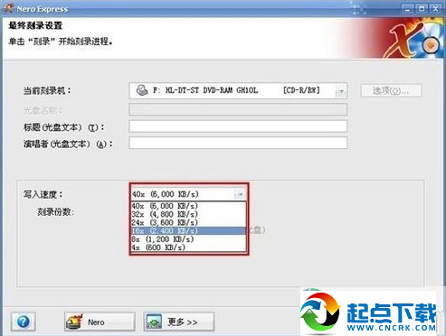 4、选择写入速度(一般都是选择16X),然后再点刻录