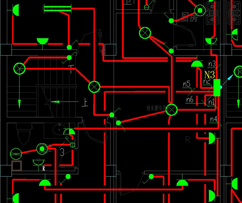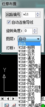 在任意布置对话框中除了可选择自动连接导线,还可调整图层,天正电气默认规定灯具、开关、插座设备,绘制后置于EQUIP-照明层,导线绘制后置于WIRE-照明