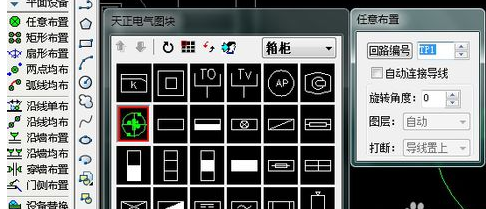 在天正电气图块中选中自己所需要的图块,小编以灯具为例,勾选自动连接导线