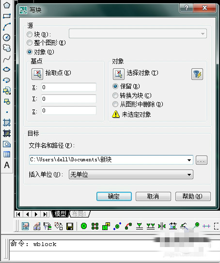 1、单独保存块文件,可以用Wblock命令:输入Wblock——确定——弹出“写块”对话框
