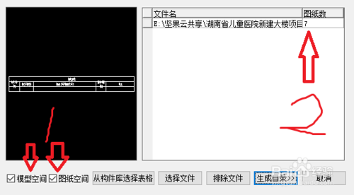 插入图框。点击左边的文件布图,插入合适的图框。注意这里一定要勾选插入标题栏。如图所示1、2、3