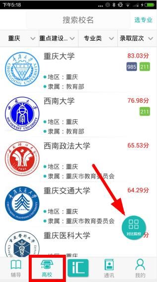 1、首先,打开青云汇高校的版块,然后点击箭头所指的对比院校的位置,小编已经指出来了!
