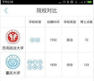 3、在这里你就能看到你所勾选的院校对比了!清晰可见哦!