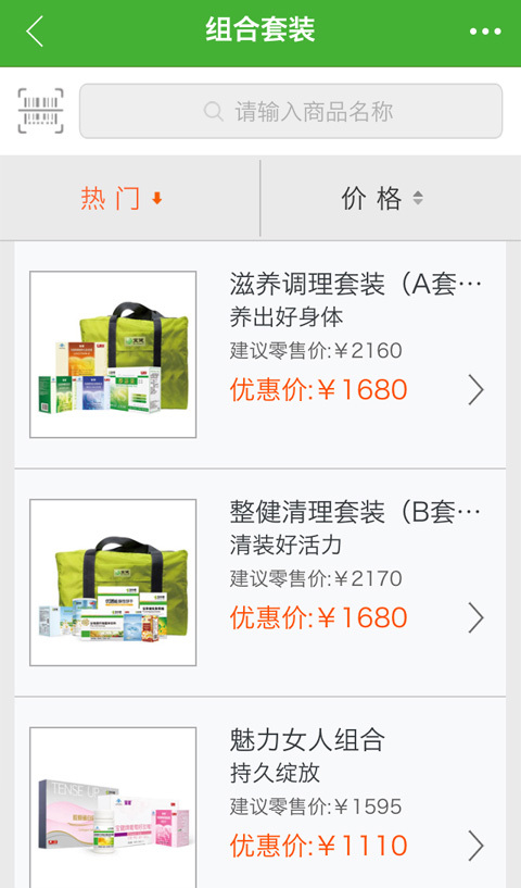 2.产品展馆包括组合套装、营养保健食品、美容护肤、日用护理、健康家居等选项,如图: