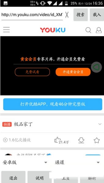 2、在找到我们想看的视频后,在通道那选择合适的解析通道,一般通道和通道1两个解析都能播放,至于清晰度,你可以换解析通道看看哪个比较好。