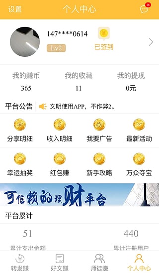 万众赚app是一款国内优质的手机赚钱平台,在万众赚每天有海量文章发布,试玩app快速赚取现金奖励,还可以提交你喜欢的公众号文章,分享到朋友圈,qq空间、新浪微博等就能轻松获得收入,真正实现躺着就能赚钱的梦想!你还可以收徒赚钱,徒弟越多,收入越多,啥都不做,让徒弟帮你赚钱就行了!在万众赚app无论你是学生还是白领,无论你是赖床还是上班,每天用闲暇时间打开万众赚点一点,流量话费不再愁,月入千元不是梦!