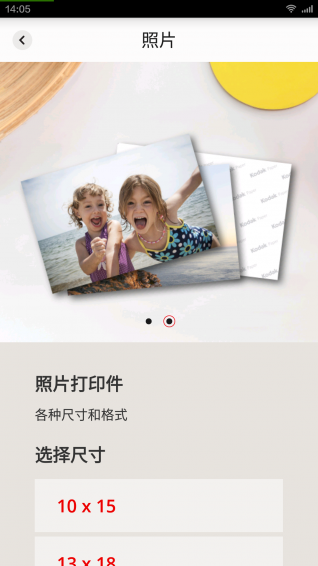 在应用内完成简单的订购和付款流程,精美的影像礼品即可送货上门。你还可以通过WIFI连接你附近的柯达自助打印机,即时打印手机中的照片,即时分享。