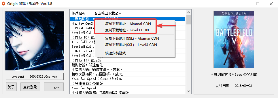 复制下载地址时增加CDN选择(akamai与level3) / 增加origin下载CDN切换功能