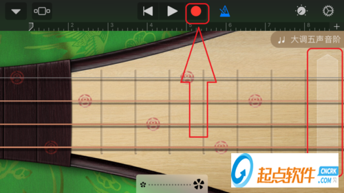 2、当我们选择好乐器后,想要录制自己制作的音乐可以按下上面的红色按钮,就会开启录制。