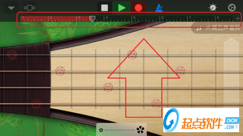 3、对于铉乐器来说右边的50%透明部分属于多选框。上方为时间轴已录的声音为红色。