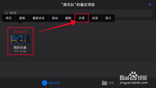 选择好之后,我们选择左侧三角,选择我的乐曲,按住后选择分享。