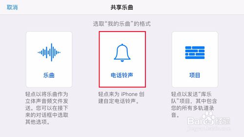 选择分享后选择电话铃声,就可以啦,我们另存下我们音乐名字。最后进入我们设置声音就可以看到我们保存的音乐了。