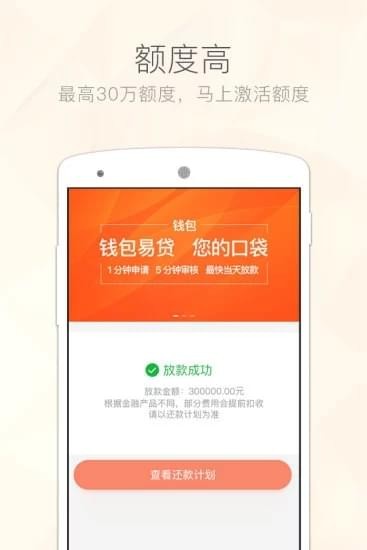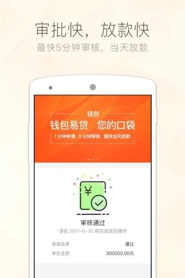 4、放款快:1分钟快速申请,审核通过当天放款,借贷就这么容易。