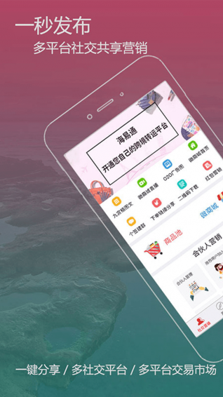 海易通app是一款专为跨境电商打造的一款销售营销软件,跨境商家能够通过该软件快速发布产品,意见推送商品到各大社交平台,还能够招募合伙人进行病毒式营销,让您的生意越做越大。