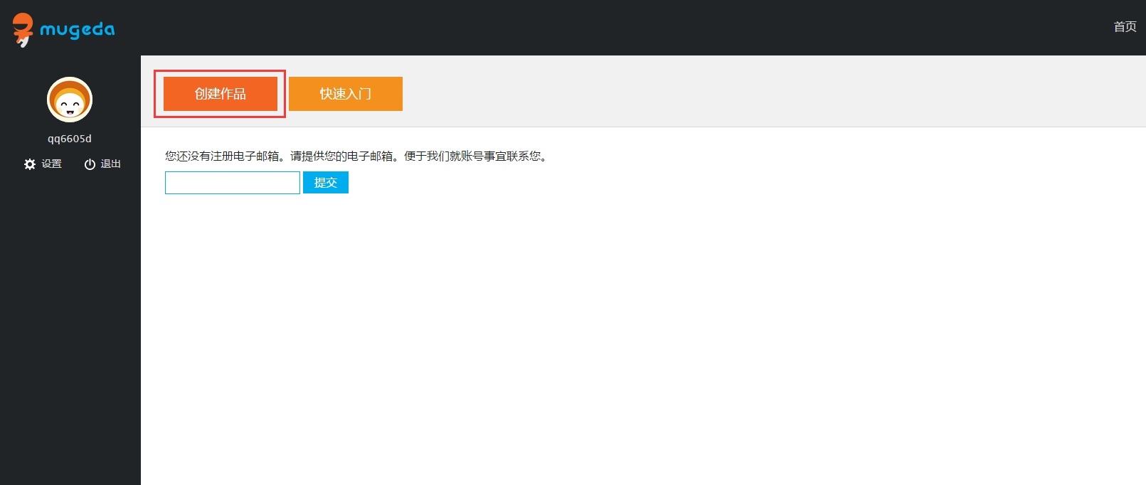首先登陆网站,如果还没有登陆账号,你可以登录www.mugeda.com免费注册一个。登录网站后,点击网站左侧的“创建作品”,然后从出现的创建列表中选择”从MugedaStudio创建”,这样MugedaStudio的在线集成开发环境会在浏览器窗口中打开了。