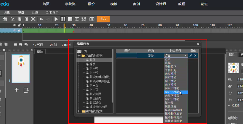 简单制作交互动画:Mugeda操作界面和Flash高度相似,因此有Flash基础的朋友基本不用通过学习就可快速制作出一个H5作品。此外,设计师也无需添加任何代码即可完成复杂的交互。