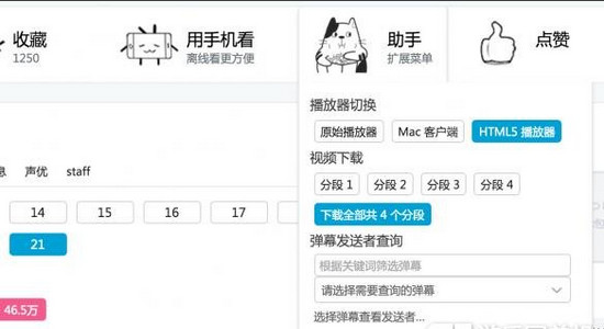 bilibili弹幕视频网现为国内最大的年轻人潮流文化娱乐社区,最大的特色是悬浮于视频上方的实时评论功能,爱好者称其为“弹幕”,这种独特的视频体验让基于互联网的即时弹幕能够超越时空限制,构建出一种奇妙的共时性的关系,形成一种虚拟的部落式观影氛围,让bilibili网站成为极具互动分享和二次创造的潮流文化娱乐社区。哔哩哔哩助手是一款可以进行播放器替换、美化网页样式、关注视频推送、关联视频搜索、下载地址获取等多功能Chrome插件。哔哩哔哩助手(Bilibili Helper)是一款基于Chrome内核浏览器的黑科技插件。通过Bilibili Helper可以简单方便的修改B站flash播放器为最新的HTML5网页播放器,同时还可以拥有关注动态通知推送、视频及弹幕下载、反向查询弹幕发送者B站帐户等功能。