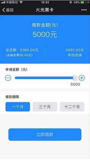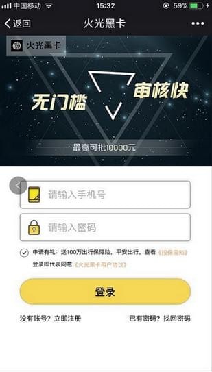 火光黑卡app是一款全新的拥有特权服务以及便捷借贷服务的黑卡手机软件。纯信用手机贷款,5分钟极速放款,小额借钱手机贷款神器;提供应急周转、小额、快速借款服务。解救月光族,让你足不出户,轻轻松松贷款借钱,全面解决借钱难问题。