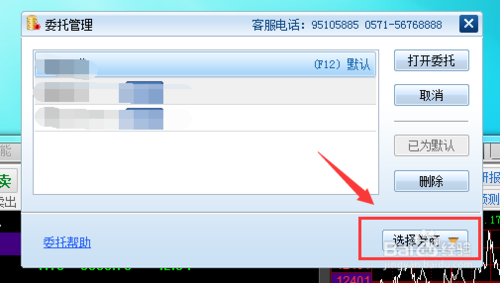 然后就会弹出小的对话框,在对话框中的右下角有一个“选择券商”,点击打开它。