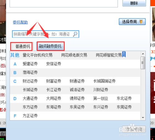 在这里你可以根据自己的情况选择普通委托还是融资融券委托,是根据你开户的情况来选择。