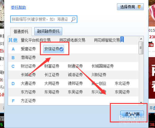 我们随意选择一个券商,选中它之后,再点击右下角的【添加券商】