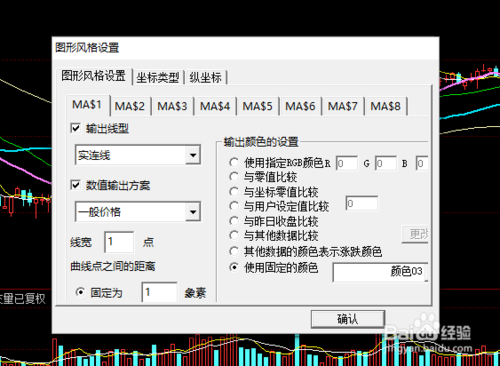 点击右边的风格设置,可以设置均线和K线系统的更多的参数,包括线型、线宽、颜色、坐标类型、纵坐标等等,可以根据需要来设置。
