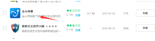 2、寻找到金山毒霸的卸载软件