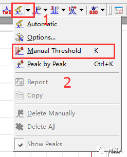 选择图中红框图标,采用人工标峰。框选出你要标的峰,然后松手。