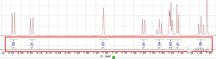 首先用下图中红框按钮对想着重观察的区域放大,一般情况下我们首先观察芳香区,也就是化学位移在7左右的区域。