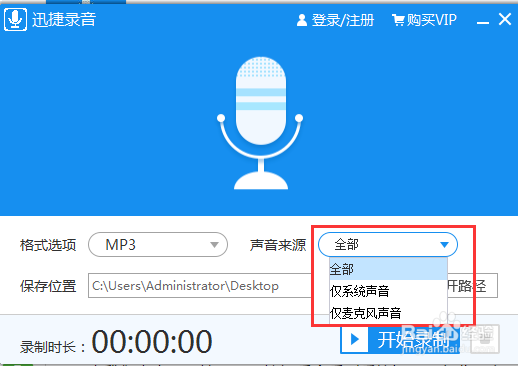 设置好音频的格式后我们再来选择音频的来源,除了可以录制电脑设备中的声音之外还可以录制电脑设备以外的声音!