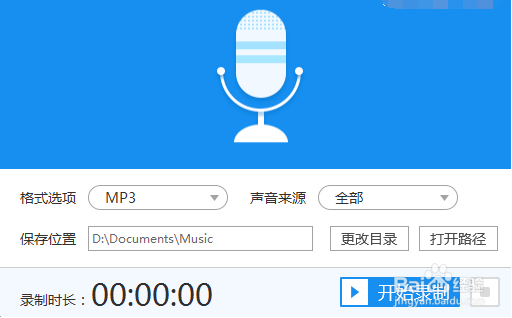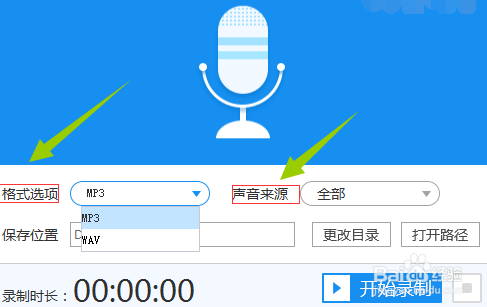 在界面中设置音频的录制格式与声音来源以及修改音频的存放目录,如下图所示: