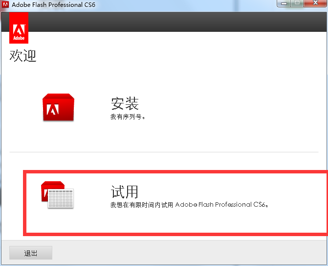 6.稍等一会儿,然后会弹出正式的安装界面,我们这里选择试用!(因为是用破解补丁破解,同时,选择试用,安装也比较方便)