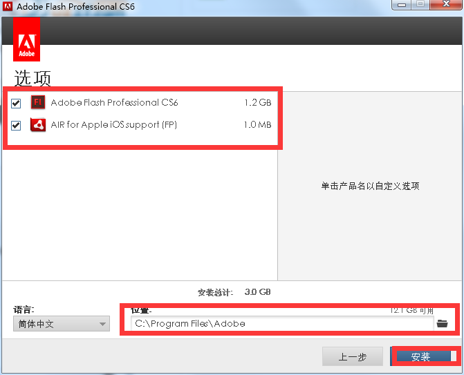 9.然后这里选择需要安装的文件,第二个可以不装吧(1M,装了也不影响)..安装目录默认C盘,占用空间3GB左右,需要改的话可以改。