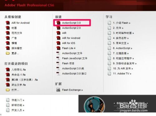 首先打开在本站下载的flash动画制图软件,选择并双击【新建】栏下的【ActiveScript 3.0】创建新的Flash空白文档