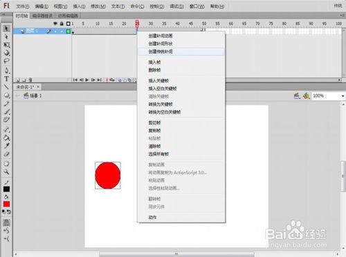 选择时间轴上的第1帧至第50帧之间的任意一帧,单击右键选择【创建传统补间】,此时“小球的移动”的动画就制作完成了