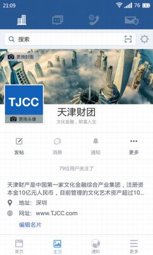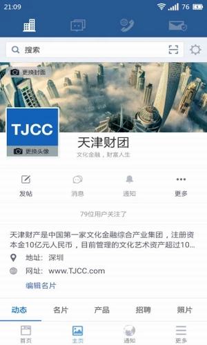 主页展示:企业和个人可通过自定义功能,构建符合个人和企业形象的个性化主页。个人注册后即拥有默认的主页。可根据兴趣爱好在主页上发布动态、博客、照片和视频,创建有特色的个人名片,全视角展示自己,建立人脉圈子,创造事业发展的机遇。