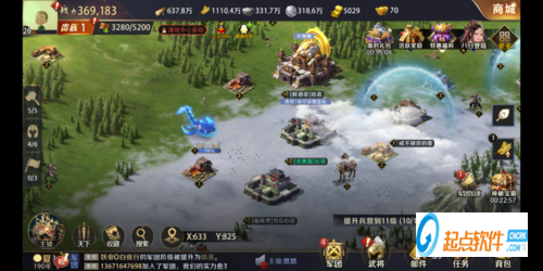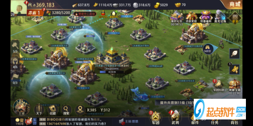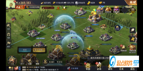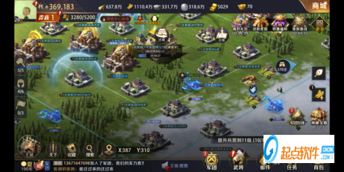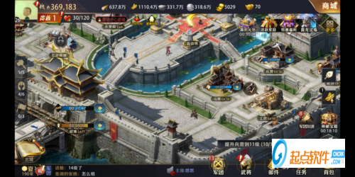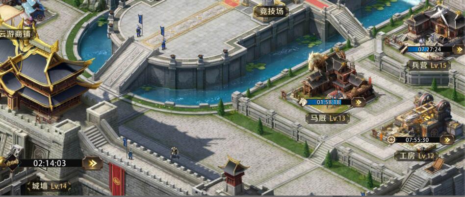 主界面中央地带是主公的城池基础设施,包括宫殿、空地、校场、竞技场、书院等,这些建筑的具体作用小编会在下期给出哦,主公需要不断提升这些设施的等级来增加城池的实力。