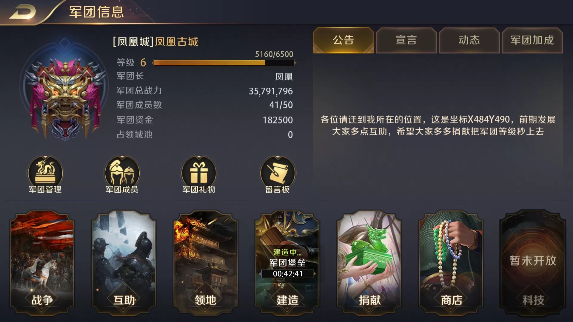 迁城成功后,军团堡垒里就看到了自己的城池,点击——进入城市,就可以进到自己的城市中。