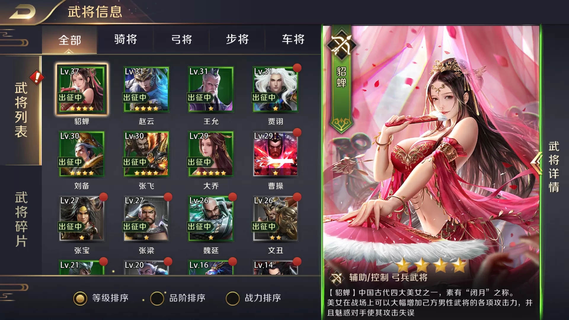 甄姬,土豪首选,有甄姬的部队真的是非常强力,主要是闪避强无敌,生存能力非常强悍,不过神将对于平民不友好。