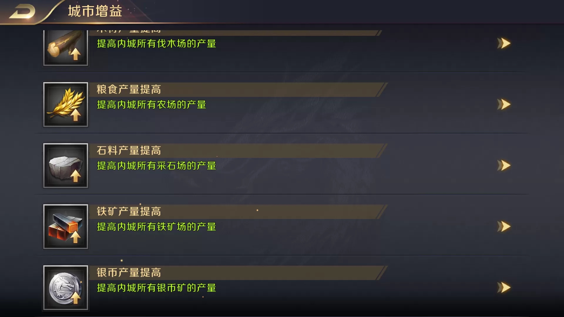 最后一个部分就是最右偏中间的城市增益图标,当没有增益时,会显示城池的图标,有多少增益数字就会显示是多少。