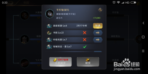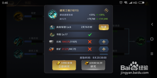 在研究的时候,快到时间的时候,不要直接秒,看地狱试炼里有没有科技研究的任务,有的话,直接用加速秒。可获得试炼奖励。