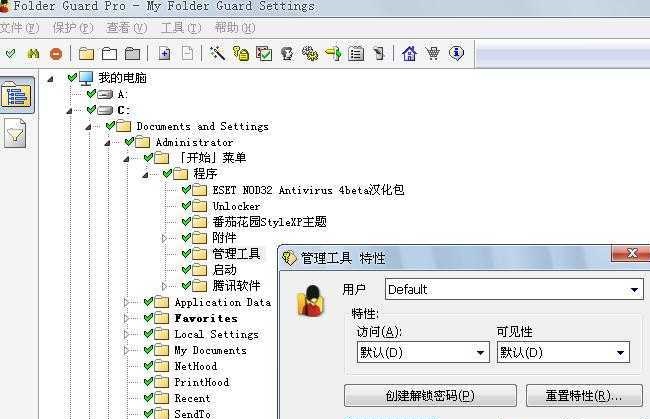它的优点就在于使用简单,作为FolderGuard的系统管理员,你可以很方便的修改目录加密,同时您也可以给各个不同的用户设置访问的帐号和口令;控制范围全面,不但各种格式的文件都可以禁止访问,还可以禁止访问开始菜单、控制面板等;灵活的控制方式,您可以指定一些程序为TrustedModules可信任程序模块,像备份工具、磁盘扫描工具、病毒检测程序等等,您可以指定对它们允许访问加密文件夹的权利;