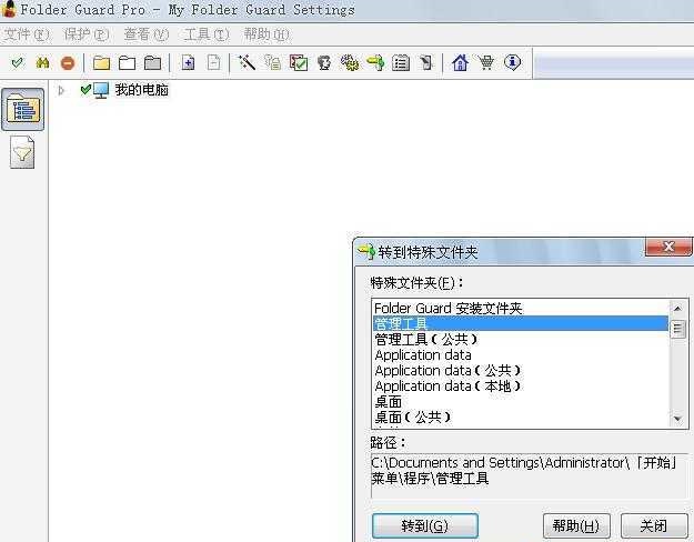 然后,就是“特殊文件夹”了,如果担心别人改动你的系统设置什么的,可以把具有管理功能的文件夹隐藏,同时将系统文件设为只读。我们只要选择要操作的文件夹,“转到”,再按文件夹权限控制操作就可以了。(往下看)