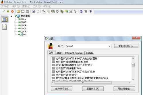 Folder Guard是一款可以严格控制你的计算机文件访问权的强大工具。特别是在你和别人共用一台机器的时候,你能利用Folder Guard来防止其他用户打开你的私人文件,或者你能完全将你的文件隐藏起来,除非输入了密码。你还能保护敏感的系统文件被修改或被破坏,防止对移动硬盘的访问,限制对控制面板和应用程序的访问等等。【软件特点】